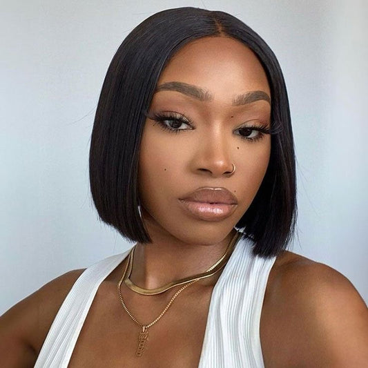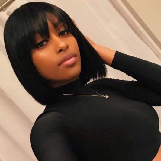 Straight #1B Black Machine Made Short Bob Wig With Bangs